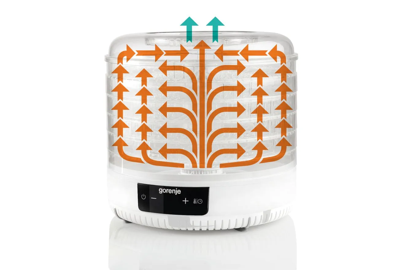 - Jednostavna zamjena posuda, Uniformno sušenje po nivoima, Očuvanje vitamina i minerala, Elektronsko upravljanje, LCD displej